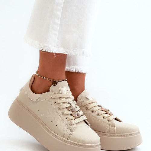 Women's sneakers by Vinceza. Made of natural leather, they guarantee durability and wearing comfort. Set on a massive platform. On the lacing decorative, cute teddy bear. Classic cut, which will perfectly complement many stylings. You absolutely must have them! fabric natural leather Footbed natural leather Upper height 6.5 cm Platform height 4.5 cm Size Insole lenght 36 23.5 cm 37...