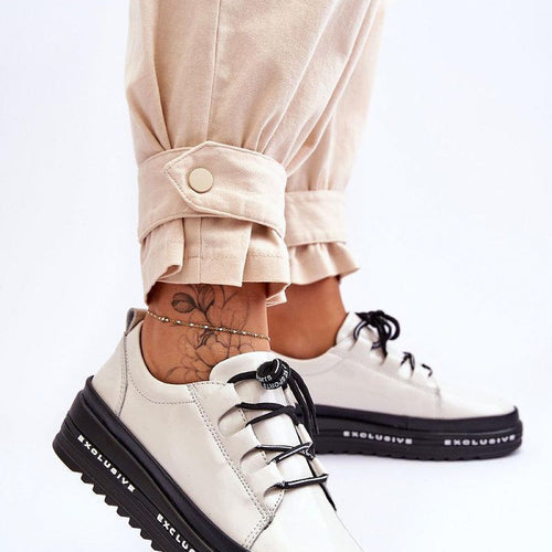 Women's sneakers by Vinceza. Made of natural leather, they guarantee durability and wearing comfort. Set on a massive platform. On the lacing a small decoration, which adds charm. Classic cut, which will perfectly complement many stylings. You absolutely must have them! fabric natural leather Footbed natural leather Upper height 6.5 cm Platform height 4.5 cm Size Insole lenght 36 23.5...