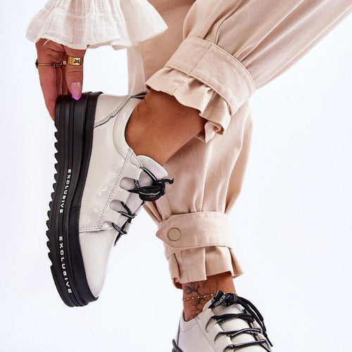 Women's sports shoes were made from a combination of eco leather and textile material. The classically laced model will allow you to adjust the footwear to the size of the leg. The shoes are set on a massive platform with a flat heel. The fabric insole will ensure comfortable use of the footwear. These fashionable sneakers are sure to prove...