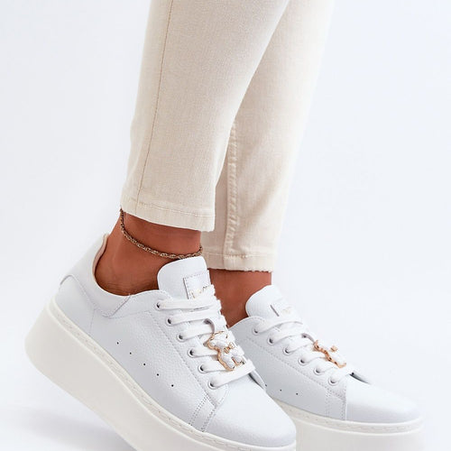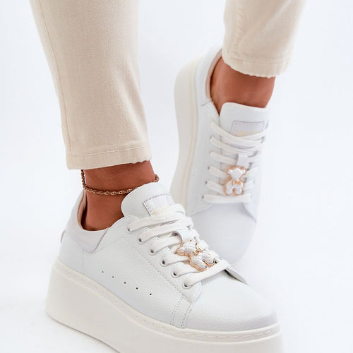 Women's sneakers by Vinceza. Made of natural leather, they guarantee durability and wearing comfort. Set on a massive platform. On the lacing decorative, cute teddy bear. Classic cut, which will perfectly complement many stylings. You absolutely must have them! fabric natural leather Footbed natural leather Upper height 6.5 cm Platform height 4.5 cm Size Insole lenght 36 23.5 cm 37...