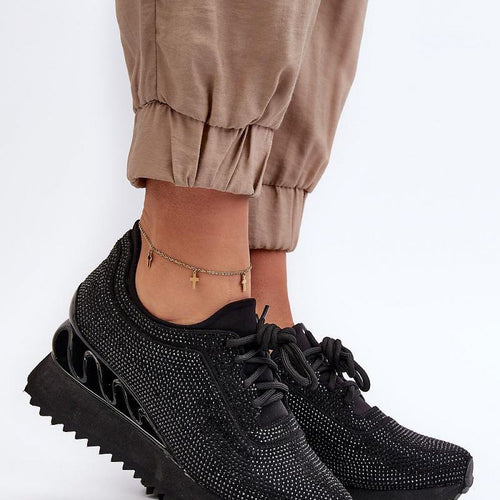 Women's sneakers decorated with zircons add sparkle to every step. Set on an anchor, they provide extra height and stability. This is footwear that not only looks unique, but also provides comfort for all-day wear. Perfect for many different occasions, from casual strolls to evening outings. fabric fabric Footbed natural leather Upper height 8 cm Heel height 6.5 cm Platform...