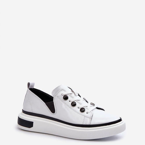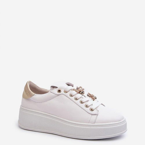 Leather sneakers with fashionable studs are a combination of comfort and style. Set on a platform, they provide extra cushioning and stability. Cute pin-stripes add to their originality. This model will be an ideal choice for women who appreciate comfort and a fashionable look. fabric natural leather Footbed natural leather Upper height 7 cm Platform height 3.5 cm Size Insole...