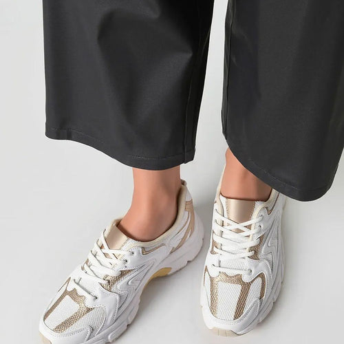 Women's sneakers AURELIA WHITE/GOLD are the perfect combination of comfort and stylish design. Their lightweight and breathable mesh upper combined with gold details make them a great choice for everyday wear and sporty outfits. The sole provides excellent cushioning, and the classic lacing allows for a perfect fit to the foot. Material: Upper: Textile material + synthetic inserts Interior: Textile...