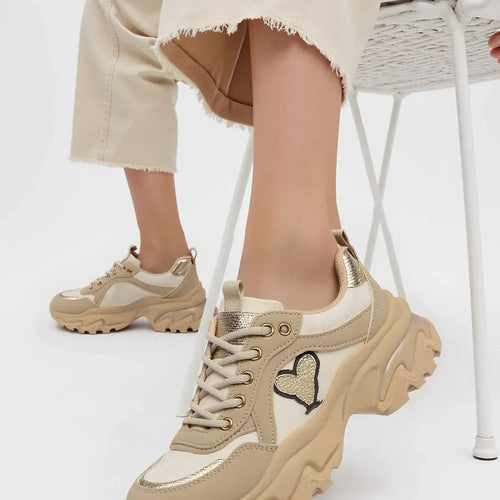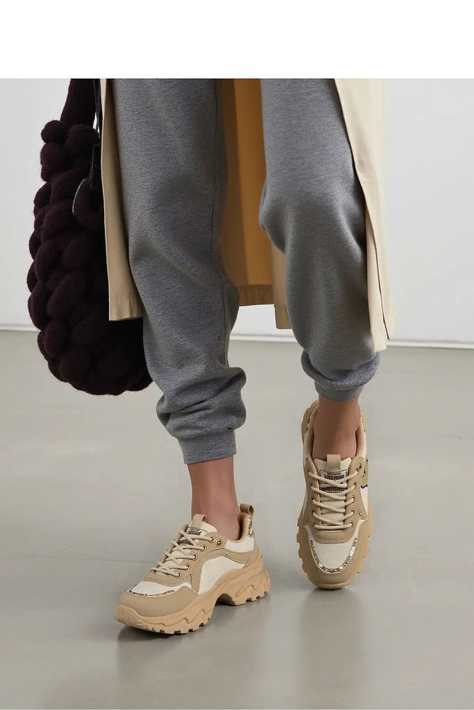 Women's SOLARA KHAKI sneakers are a combination of elegance and sporty style. Their subtle khaki color makes them extremely versatile and they pair well with various outfits. Shiny details and subtle decorations give them a unique character. Made of high-quality materials, they ensure comfort throughout the day. The thick, sturdy sole guarantees stability and durability. Material: Upper: Synthetic leather, textile...