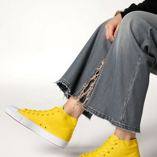 Women's LUMINOUS YELLOW sneakers are a combination of classic style and modern design. Made of lightweight, breathable textile material, they provide comfort for all-day wear. The high upper and thick sole guarantee stability and durability. The neon yellow color stands out in urban stylings, perfectly complementing casual and streetwear outfits. Product features: Material: High-quality textile fabric Sole: Thick, non-slip, with...