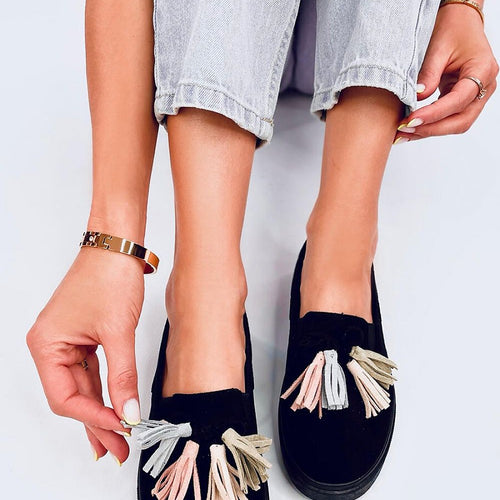 Moccasins - sneakers for women suede. A charming bow finished with tassels makes it impossible to take your eyes off. The slip-on model guarantees quick and effortless putting on. What to want more? : ) The interior of the shoes is lined with fabric. External material ? ecological suede. fabric ecological suede Footbed fabric Size Insole lenght 36 23,5 cm...