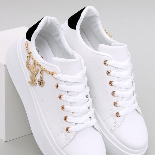 Sports shoes - sneakers for women on a platform. A stylish gold-colored pendant with charms adds variety to the design of this model.... This is an absolute must have of this season! You will attract all eyes in these shoes : ) The interior is lined with fabric. Outer material - ecological leather + ecological suede. fabric ~skóra ekologiczna +...