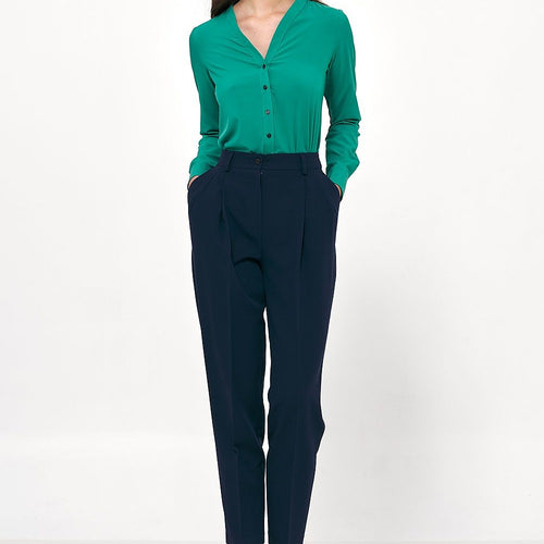 High-waisted balloon pants are a versatile choice that make the perfect base for an office outfit. They look great with a white shirt and a short jacket, creating an elegant suit. The pants are made of material with an addition of viscose. On the sides there are practical pockets. Spandex 2.1 % Polyester 74.8 % Viscose 23.1 % Size Lenght...