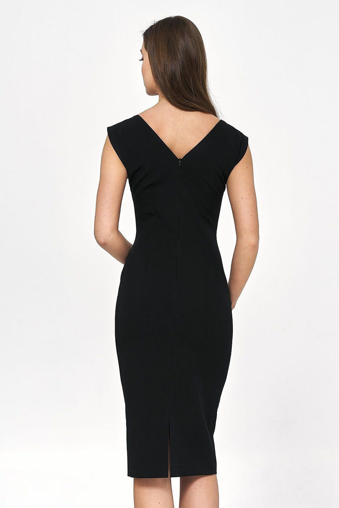 Pencil dress is a perfect option for the office and beyond. This classic, minimalist cut will never let you down. It will perfectly emphasize the feminine silhouette. Short-sleeved model with a length reaching beyond the knee. The fitted pencil hem is finished with an opening at the back. The dress does not have a lining. Spandex 2.1 % Polyester 74.8...