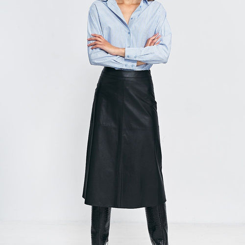 You haven't seen such a skirt with us yet! The midi skirt is made of imitation leather material and has a waist belt, so it will perfectly emphasize your figure. Fastened at the back with a zipper. The pleats on the belt line and the midi length will emphasize your waist and elongate your figure. It will perfectly match autumn...