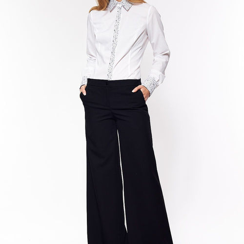 Trousers with slightly elevated waist and flared leg is a model that will never go out of fashion, always reigning in trends, only in different combinations. Paired with a stiletto heel they will optically slim and elongate your legs. They will also look good with a loose sweater and flat shoes. A classic for which you will surely find a...