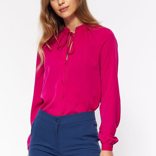 Welcome spring with color! Shirt with collar and tie, buttoned up is a must have in your closet! Perfect for everyday outfits e.g. with jeans, but it will also look phenomenal with a pencil skirt and stiletto heels. A tied collar adds charm and elegance. Spandex 2 % Polyester 98 % Size Total length Chest 36 64.5 cm 97 cm...