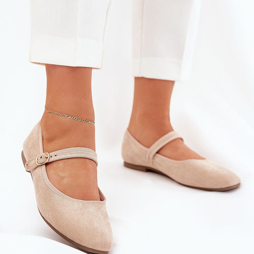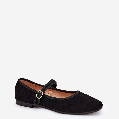 Women's ballet flats made of ecological suede. The model is characterized by rounded toes and a strap placed on the instep, which is fastened with a buckle, guaranteeing a perfect fit to the foot. These ballet flats will be perfect for various occasions. fabric imitation leather suede Footbed artificial leather Heel height 1 cm Size Insole lenght 36 23.5 cm...