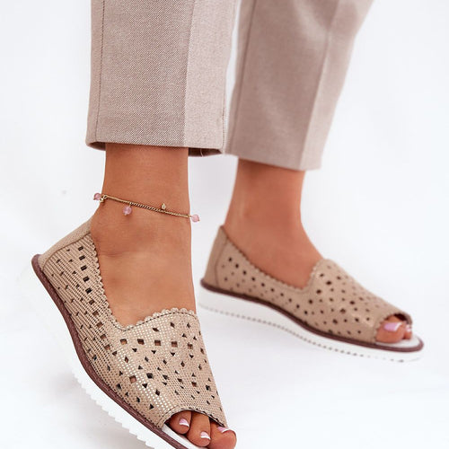 Women's ballet flats made of natural leather. Set on a delicate platform, they provide comfort throughout the day. The model with open toes. The lacy pattern gives them a unique charm and lightness. The leather insole ensures proper cushioning and comfort during wear. These ballet flats will be a perfect choice for both elegant and everyday stylizations. fabric natural leather...