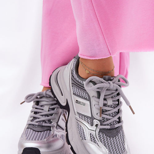 Light sports shoes from the Big Star brand. Set on a platform, they combine comfort with a modern look. Rounded toes provide comfort all day long, and the platform guarantees extra stability. The HI-POLLY SYSTEM insole, made from recycled materials, is highly resistant to abrasion and deformation, effectively absorbs moisture, and provides excellent shock absorption, making them the perfect choice...
