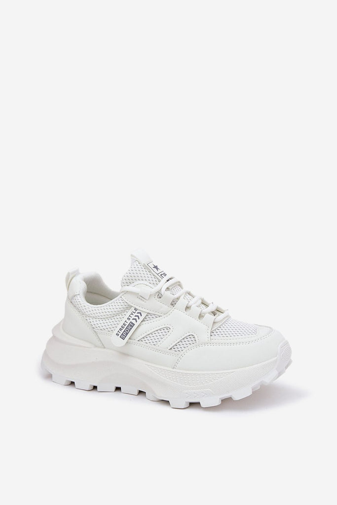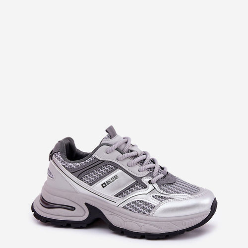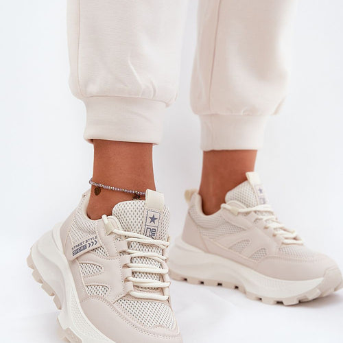 Light sneakers from the Big Star brand. Made of eco leather. Set on a platform. Rounded toes. This model has a HI-POLY SYSTEM insole made of recycled material. The insole is resistant to abrasion and deformation, effectively absorbs moisture and cushions shocks, providing comfort even during intense activities. These shoes are the perfect combination of comfort, durability, and fashionable appearance,...