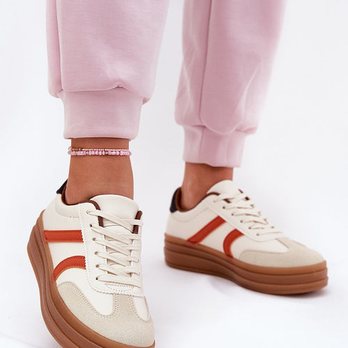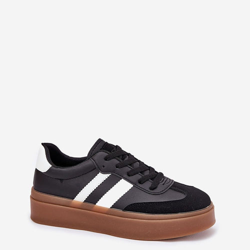 Women's sneakers made of ecological leather. Set on a platform, which visually slims the silhouette. Rounded toes guarantee comfort all day long. The foam insole covered with material provides proper cushioning. These sneakers are the perfect choice for everyday styling, combining functionality with a modern look. fabric artificial leather Footbed tkanina plus piano Upper height 6.5 cm Platform height 4...