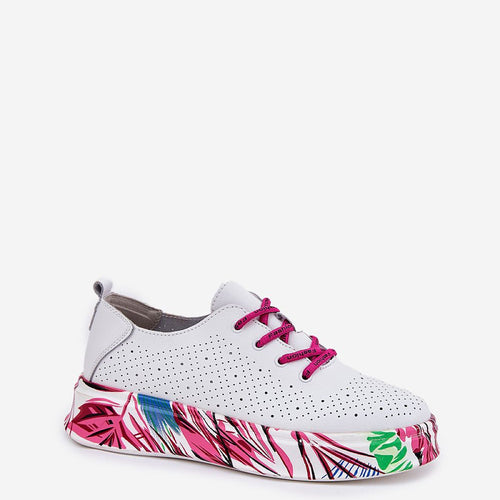 Women's sneakers from the brand Vinceza. Made of natural leather. This model features a patterned platform that adds a unique character. Rounded toes. The soft insole ensures comfort with every step. Stylish, lightweight, and comfortable, perfect for various outfits! fabric natural leather Footbed natural leather Upper height 6.5 cm Platform height 3.5 cm Size Insole lenght 36 23.5 cm 37...