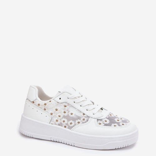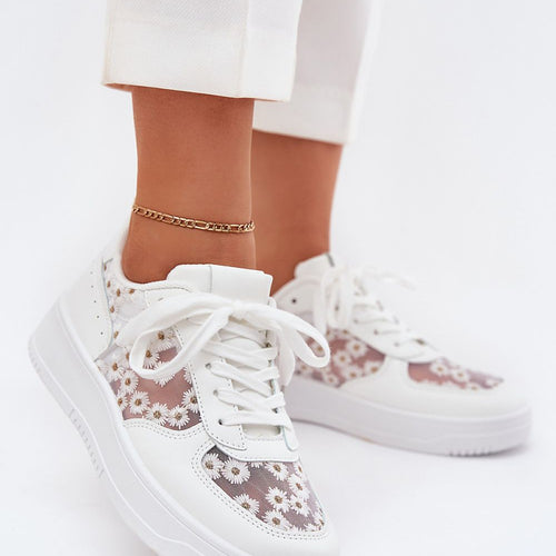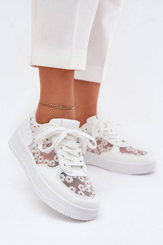 Women's sneakers made of a combination of mesh and eco-leather are a comfortable and stylish option for everyday wear. Set on a platform, they provide comfort and lightness. The upper features cute, decorative daisies that add a unique character. The removable, soft foam insole, additionally covered with material, ensures comfort all day long. Perfect for casual styling! fabric artificial leather...