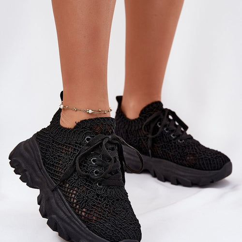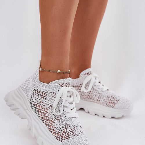 Platform sneakers are the perfect choice if you want to subtly add a few centimeters to yourself. A lace-up model that attracts attention with its unique upper, a crochet pattern combined with mesh makes the shoes light and breathable. An additional advantage is the foam, removable insole that guarantees comfort all day long. This is a great option for urban...
