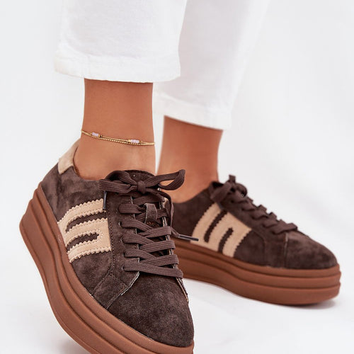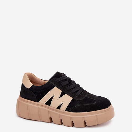 Women's sneakers made of natural suede are a combination of elegance and comfort. Set on a platform, they add lightness and height to the silhouette, while providing comfort with every step. Rounded toes give the shoes a subtle, classic look. This model has a soft, leather insole that guarantees extra comfort and pleasure of wearing. Perfect for everyday styling, combining...