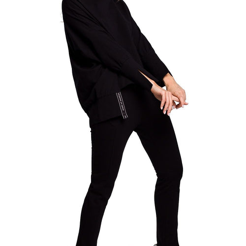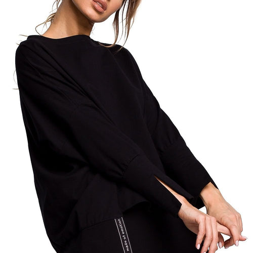 For the transitional season and cool evenings, perfect with jeans but also in more elegant combination - unique, mismatched sweatshirt with high slits on sides and cuffs and decorative piping. Cotton 90 % Spandex 10 % Size Total length Chest 2XL/3XL 66 cm 164 cm L/XL 66 cm 156 cm S/M 66 cm 146 cm