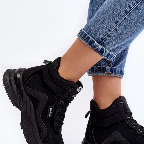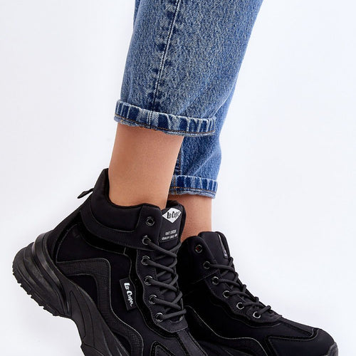 Women's trappers by Lee Cooper set on a solid rubber sole, which insulates and cushions well from the ground. This model is made of a combination of eco leather and textile material. The upper is behind the ankle. The heel counter is stiffened. The soft insole will provide comfort during use. fabric ~skóra ekologiczna plus tkanina Footbed fabric Upper height...