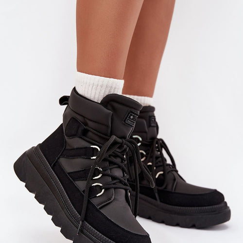 Insulated women's ankle boots are a perfect choice for winter days. Set on a platform, they provide comfort and stability while walking. This model is equipped with lacing and an additional zipper closure, which makes it easier to put on and adjust to the foot. The insulation inside the shoe guarantees warmth even on cold days. The stylish design makes...
