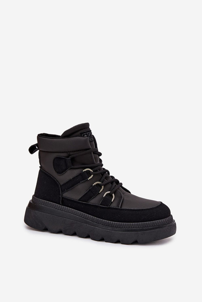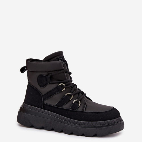 Women's black and green colored trappers for the autumn/winter season, made of durable synthetic material, will be perfect for changing cold conditions. The 16 cm high upper stably wraps around the ankle, providing support and protection. The interior lined with a textile insole with warming provides thermal comfort and comfortable wear. The 4 cm high heel adds subtle height and...