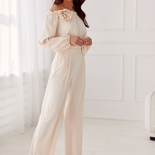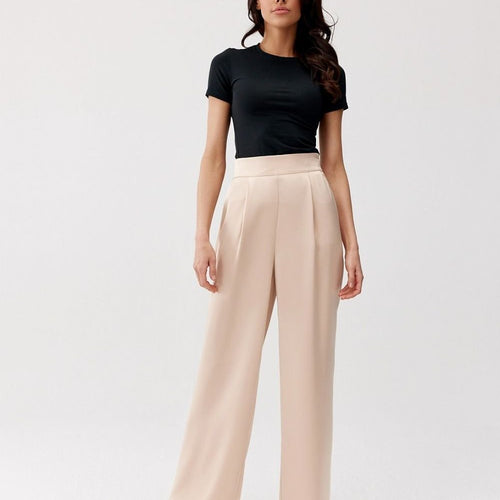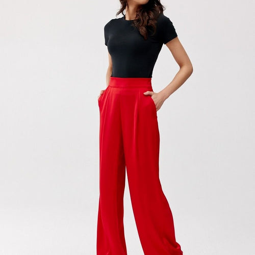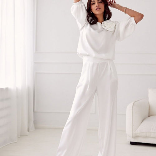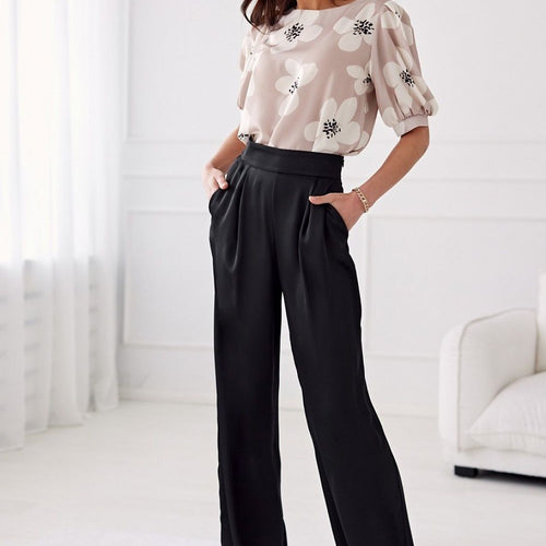 Fabric pants in the style of swedes and palazzos are the perfect choice for casual everyday occasions. Their smooth pattern dominates the space, presenting elegance in simplicity. Made mainly of polyester, these pants provide comfortable wear and durable material. The high waist gives them a unique look and accentuates the silhouette. The lack of pockets makes the line of the...