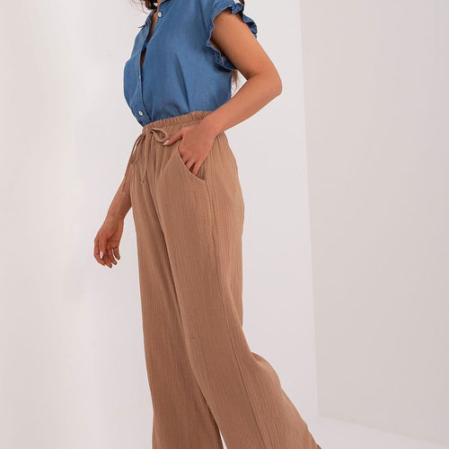Alaya pants are a perfectly tailored model that beautifully emphasizes women's charms. The pants are extremely comfortable to wear and look great on any type of figure. They have loose and wide leg type, which is fashionable and very practical. The built-in wide waistband and high waist condition perfectly emphasize the waist, optically slimming the figure. The pants have pockets...