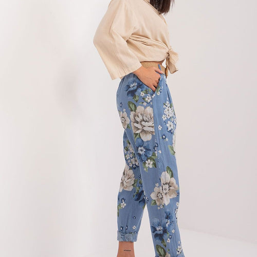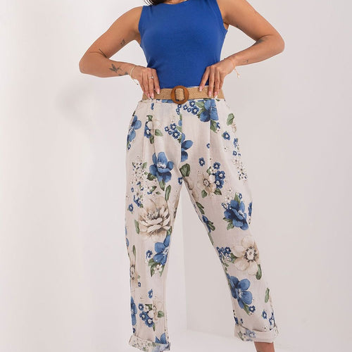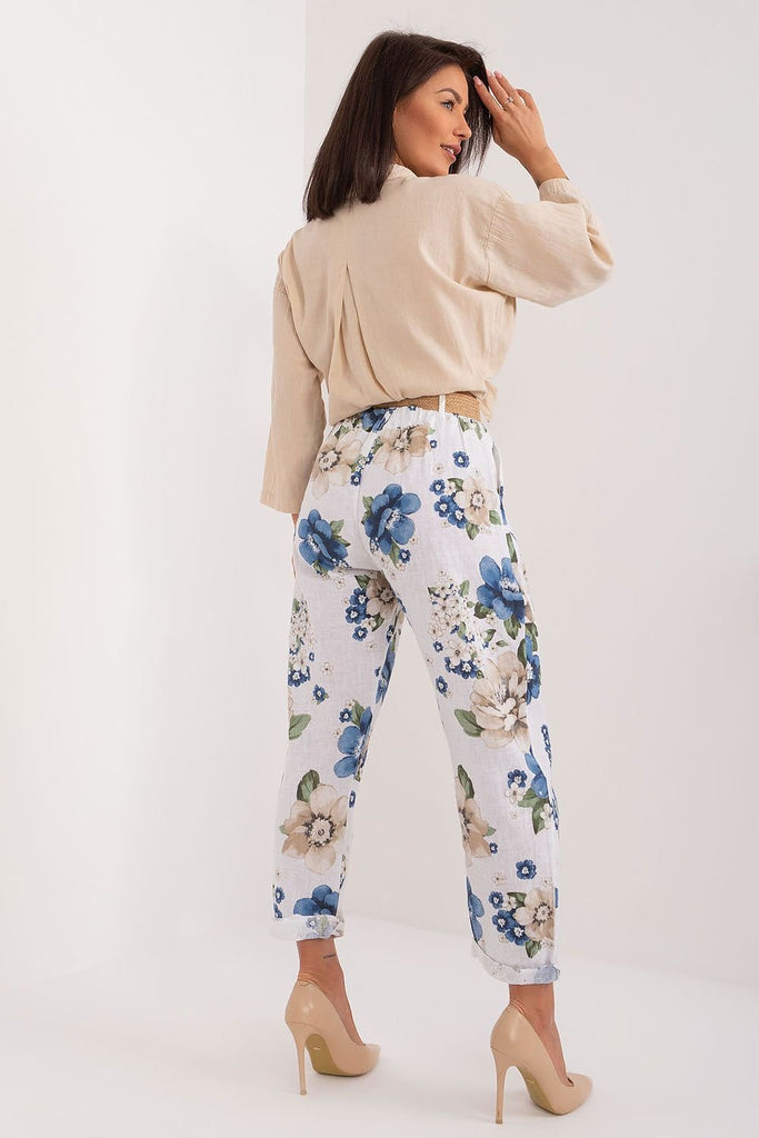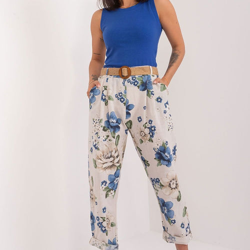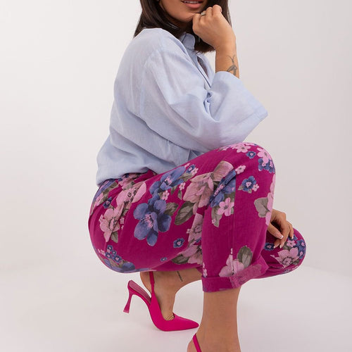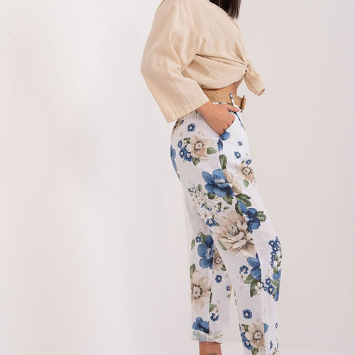 These casual-style fabric pants perfectly combine comfort with the subtlety of a floral pattern. Made of predominantly cotton, they guarantee maximum comfort and breathability, ideal for everyday wear. The high-waisted pants accentuate the silhouette and provide comfortable wear, while adding elegance to the overall look. Tapered legs give the pants a modern look that goes well with a variety of...