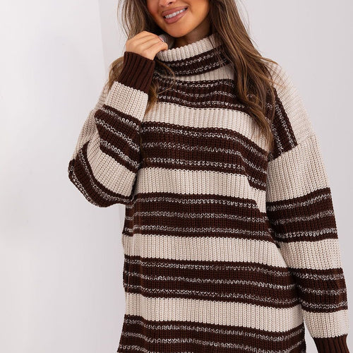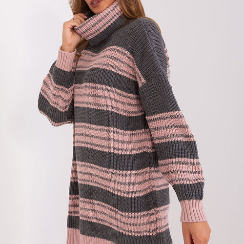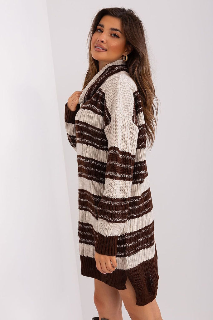 When you choose this knit dress, you not only get exceptional comfort, but also a fashionable finish in the form of colorful stripes and a slightly extended back. The dress adopts a loose oversize cut, which guarantees unparalleled wearing comfort and freedom of movement. It is an ideal choice for women who appreciate comfort and fashionable ease. The dress features...
