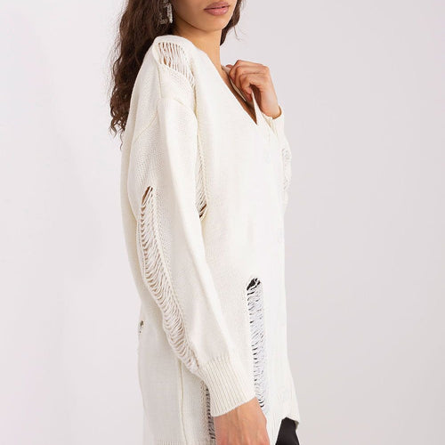 This charming sweater is an excellent choice for women who appreciate originality and comfort. The sweater is equipped with tasteful buttons, which give it a classic touch. Thanks to them you can adjust the depth of the neckline, adjusting the sweater to your preferences. Subtle decorative holes are a unique design element of the sweater. They add lightness and delicacy...