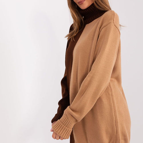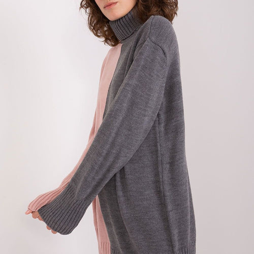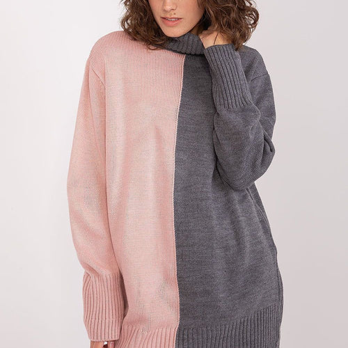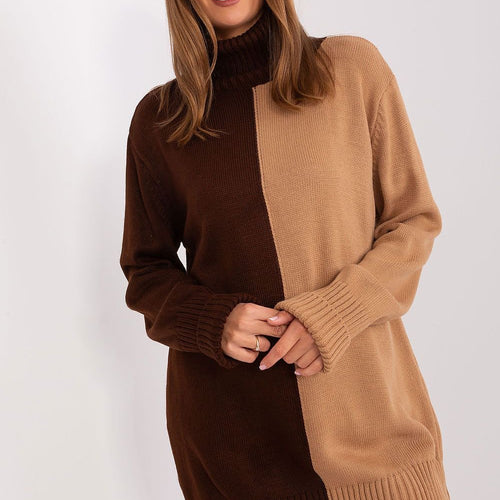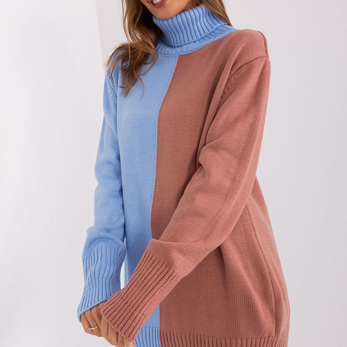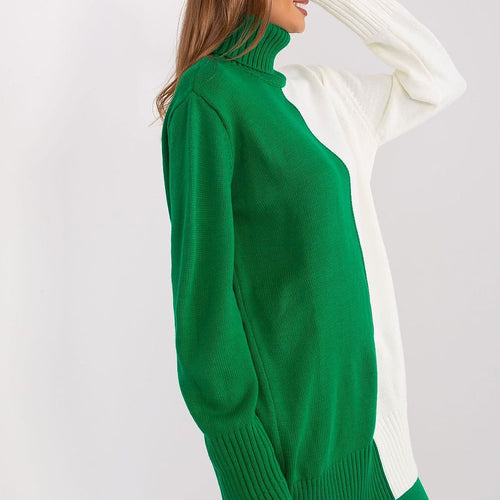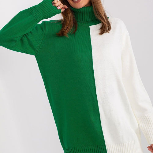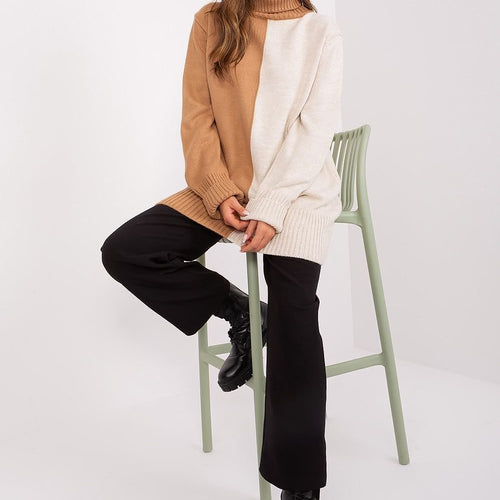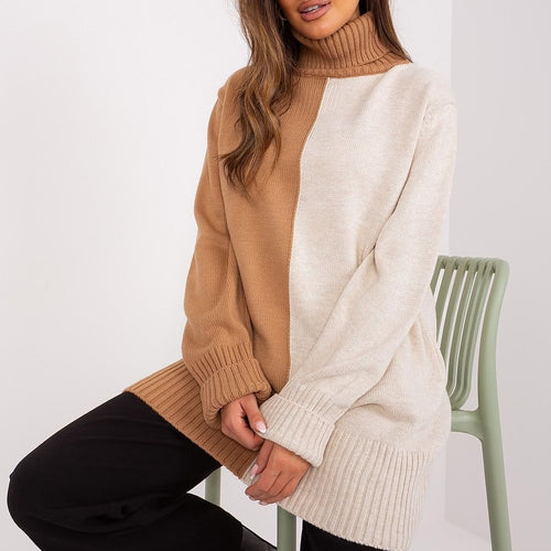 This two-tone sweater is a great everyday option, perfect for casual outfits. The smooth pattern gives it versatility, allowing you to easily match it with different ensembles. Made of pleasant to the touch acrylic, this sweater guarantees not only warmth, but also wearing comfort. The long sleeve and turtleneck make it an excellent choice for colder days. The sweater reaches...
