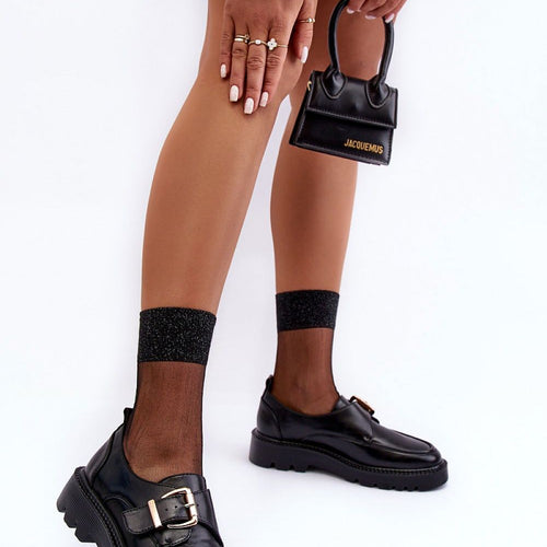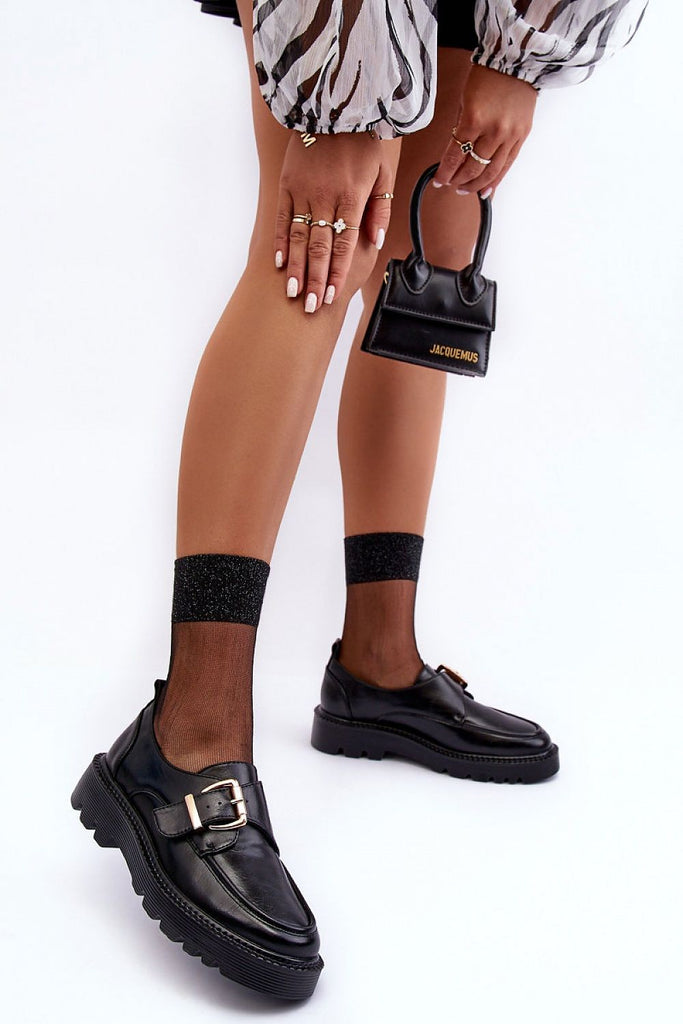 Elegant women's half shoes made of eco leather. Set on a flat heel and platform. Rounded toe caps. Upper decorated with a strap with a gold buckle. The heel counter is stiffened. Soft eco leather insole will ensure comfortable use. These shoes will work well in many stylizations! Be sure to check out our entire collection of half shoes! fabric...