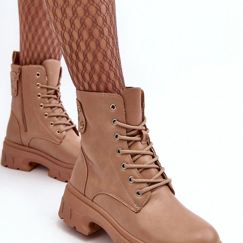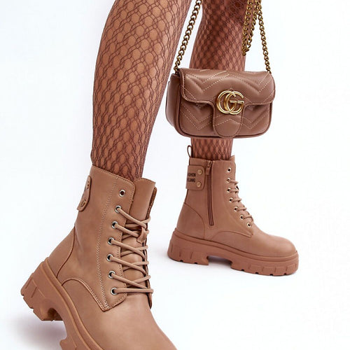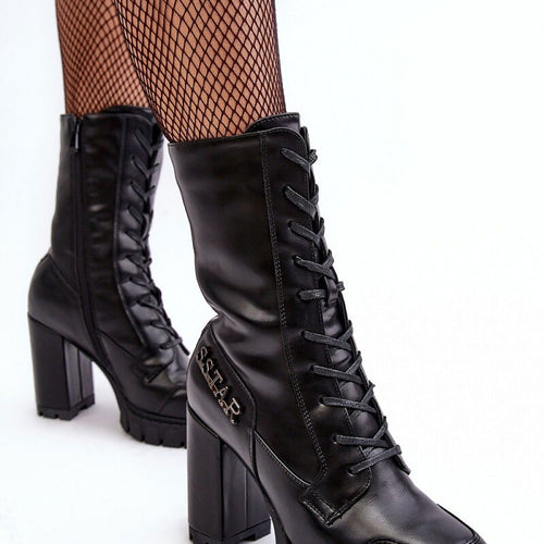 Women's boots made of a combination of eco leather and eco suede. Zipper closure on the inside of the upper. Lacing at the front. Heel in the form of a high post. Model with a higher upper. The center is insulated with shoe blanket. In addition, the heel counter is stiffened. fabric ~skóra ekologiczna plus skóra ekologiczna zamszowa warmers shoe...