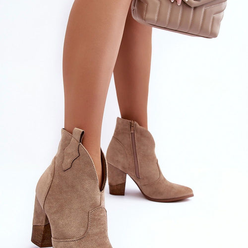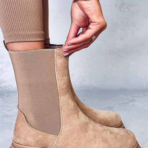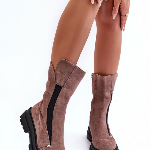 Women's suede boots. This timeless model on a wide heel with a height of 5.5 cm is sure to delight female fans of comfort : ) See for yourself how special you will feel in these boots! Their undoubted advantage is a practical zipper closure on the side of the upper. They are made of eco-suede, and the interior is...