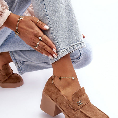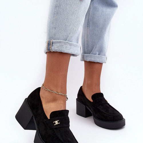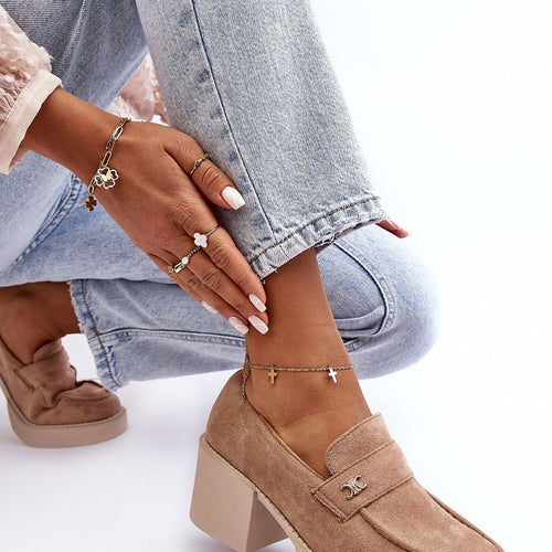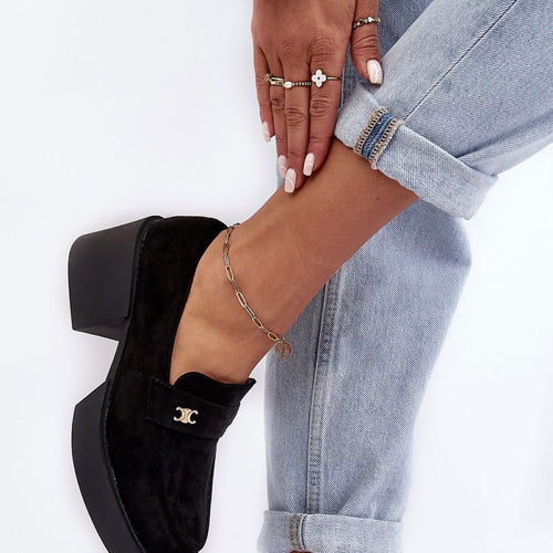 Slip-on half-shoes made of natural suede with a rounded toe. Set on a massive platform and a flat, stable heel. Model with high tread on the sole. Decorative chain on the top. The half-shoes have a stiffened heel counter. Fashionable, comfortable, made with attention to detail in a word: perfect! Soft, made of natural leather insole will take care of...
