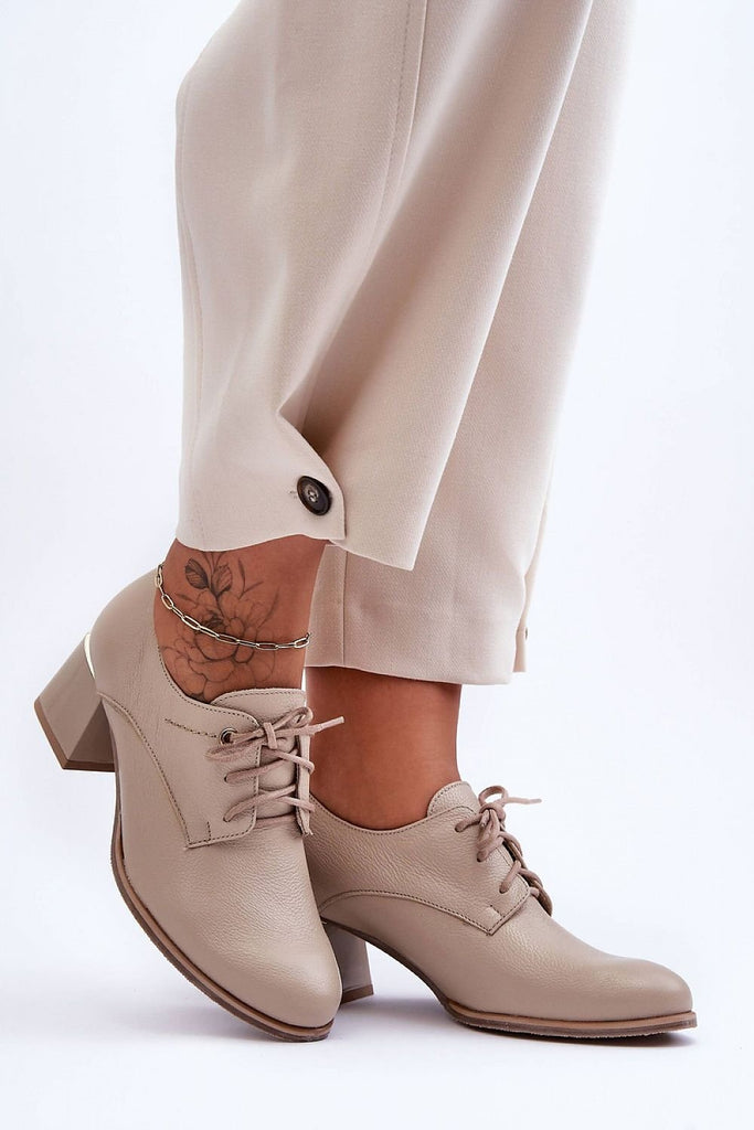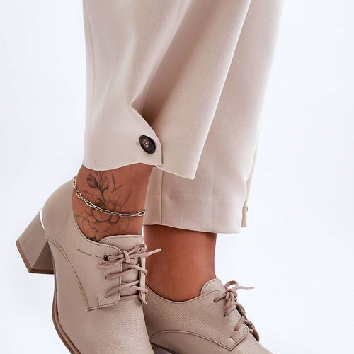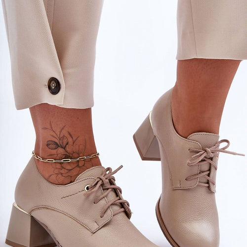 Elegant women's half shoes were made of natural leather and set on a heel. This model has a stiffened heel counter and lacing. The soft leather insole will ensure comfortable use of the shoes. These shoes will work well in many stylings! Be sure to check out our entire collection of half shoes! fabric natural leather Footbed natural leather Upper...