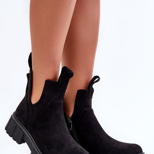 This model looks extremely fashionable and stylish! Women's boots were made of eco-suede with cutouts on the sides of the upper. They were set on a massive platform and a flat heel. This model has a rounded nose. The middle is not insulated. The boots are fastened on the side with a zipper. Don't wait for them to disappear and...