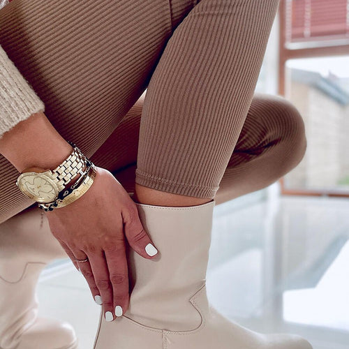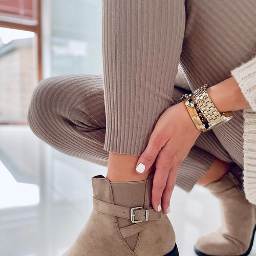 Classic women's boots on a flat sole. The unique charm of this model lies in its simple and timeless cut with a subtle buckle. They have a comfortable zipper closure and a rubber insert, characteristic of the slippers. They are made of eco-suede, on a foam lining. fabric ecological suede warmers foam padding Heel height 3 cm Size Insole lenght...