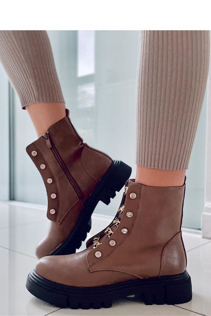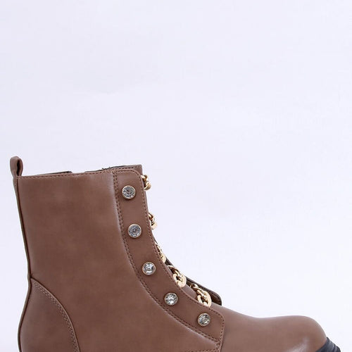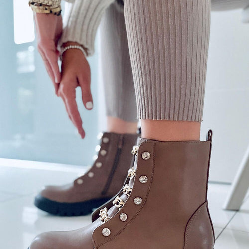 Women's veneer military boots. Model with striking stones and gold chains on the front is an absolute hit : ) You will go crazy about them! The comfort of putting them on is provided by a zipper closure on the side of the upper. They are made of organic leather, and the interior is lined with soft fur. fabric artificial...