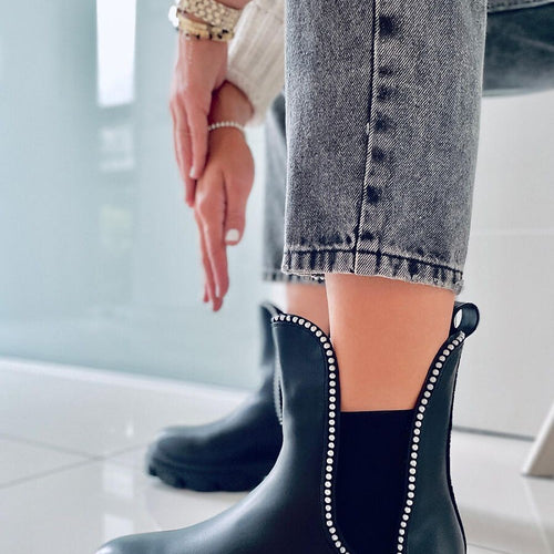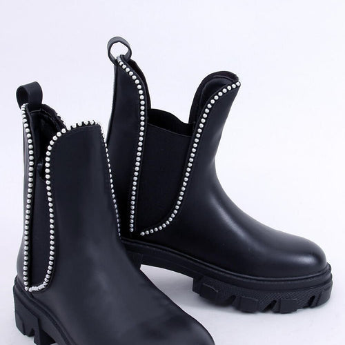 Women's veneer boots ? Lace-ups on a thick sole. Thanks to fashionable pearls, the boots gain character! Putting on is facilitated by two elastic inserts on the sides of the upper. If you are a fan of timeless black, this model is made for you : ) They are made of organic leather, and the interior is lined with soft...