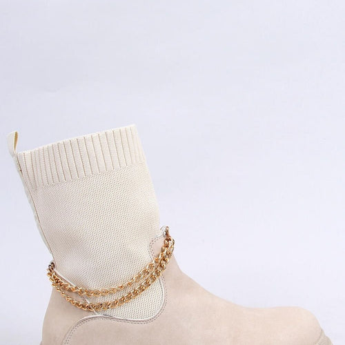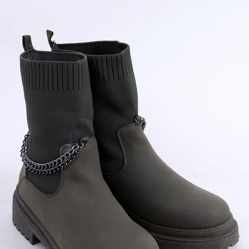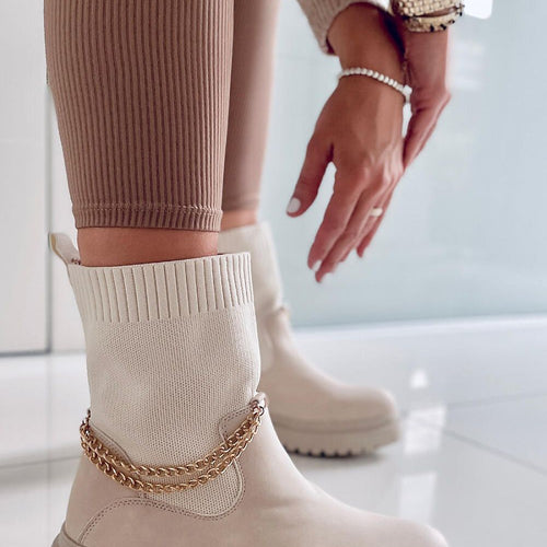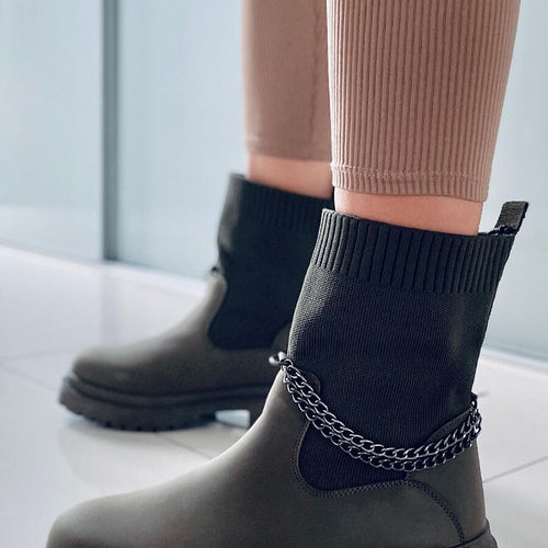 Women's boots on a protector. Unique cut on a thick sole is an absolute hit! The upper is made of elastic fabric and is embellished with the most fashionable accessory - a chain. I guess you already know which shoes will reign in your closet : ) Outer material - fabric + ecological leather. fabric fabric + leatherette warmers ~delikatne...