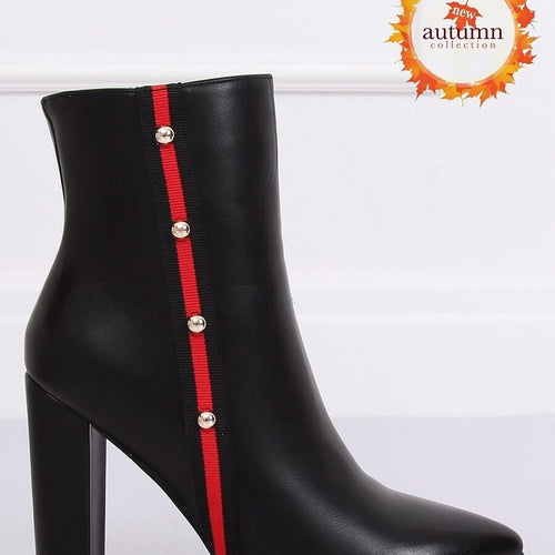 Black women's boots with a delicate pointed nose. If you love classic cuts with the most fashionable accessories - belts and silver studs - this model is made for you : ) They have a high 11 cm heel that will give you fabulously long legs... Don't wait! Zipper on the side for easy putting on. Inside the shoes is...