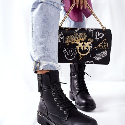 Amski glan style boots will go well with many outfits. Made of plastic imitating eco leather. Model set on a flat heel and a platform. The sole made of rubber material is additionally non-slip. The model is classically laced with a zipper closure on the side of the upper. Inside, the boots are insulated with soft shoe blanket. fabric ~tworzywo...