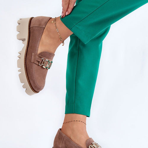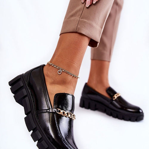 Great half shoes in the style of beautiful loafers. The shoes are made of high quality eco leather. The distinctive chain looks really wonderful. The half-shoes have a thicker sole and a delicate heel, which will lift our silhouette. They will perfectly complement any styling, adding unforced elegance. You should definitely have them! fabric artificial leather warmers Lack Footbed natural...
