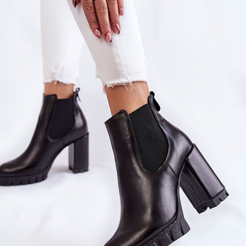 Exceptional women's boots were made of high-quality leather. The model in the style of trappers on a heel in the form of a massive post. The boots additionally have a platform with grooves. The heel counter is stiffened. Insulated inside with a shoe blanket. Ideal cut for cool autumn days. Be sure to check out the other models of boots...