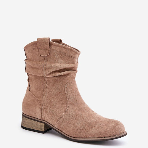 Women's boots made of ecological suede. They are set on a low block heel. They have rounded toes. Fastened with a zipper. The inside is insulated with a shoe blanket. This is a classic model, which can be easily matched with a variety of autumn styling. fabric imitation leather suede warmers shoe cover Footbed shoe cover Upper height 17 cm...
